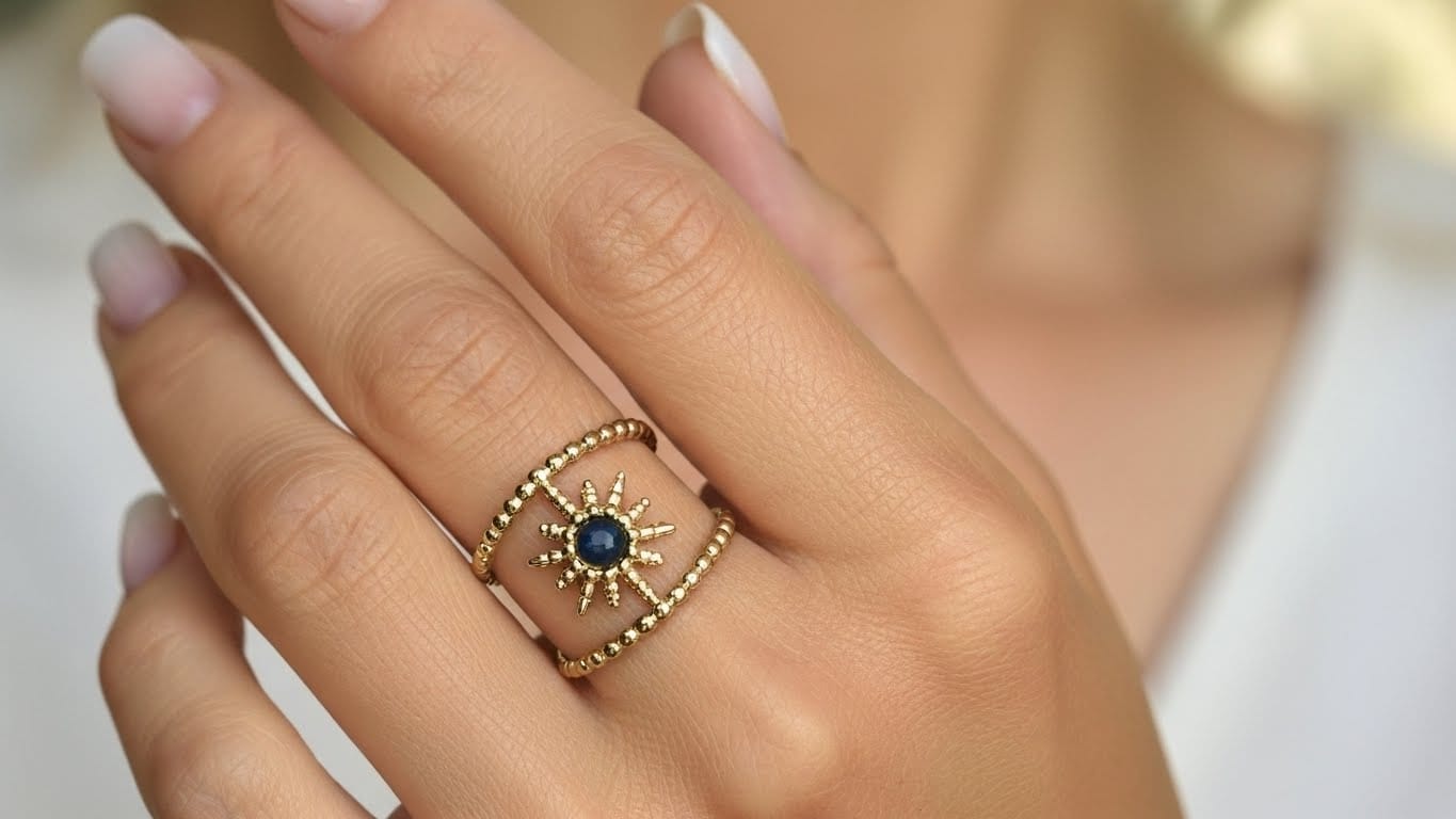 Anello in acciaio inossidabile placcato oro 18 carati, con Lapislazzuli.