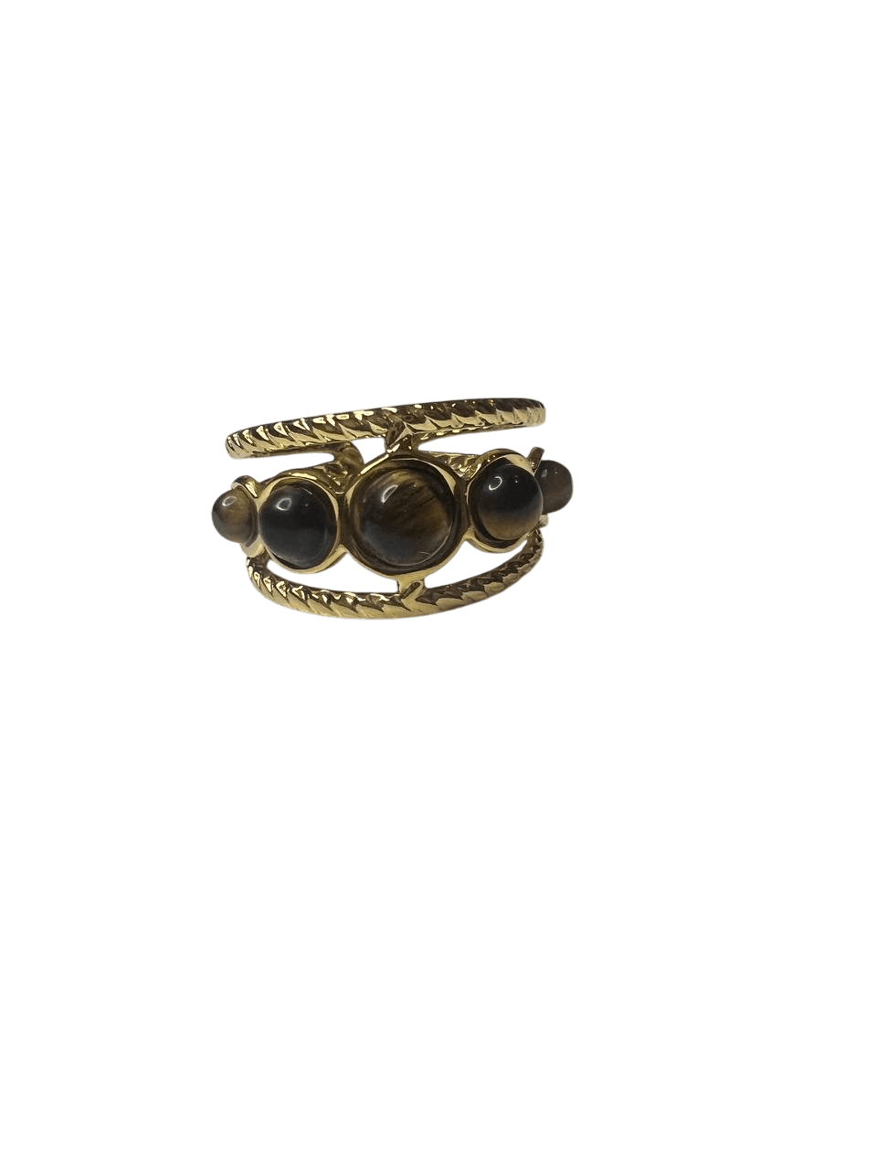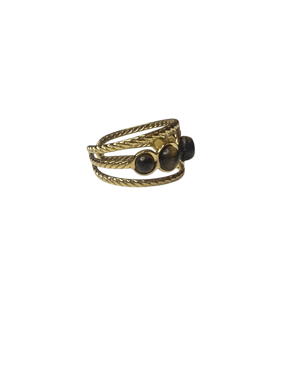 Anello in acciaio inossidabile placcato oro 18 carati, con Occhio di tigre.