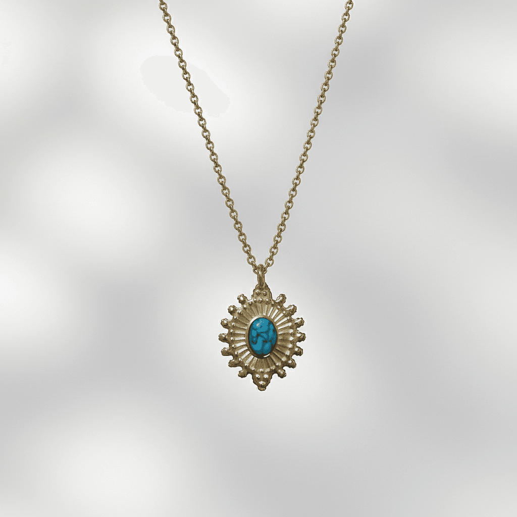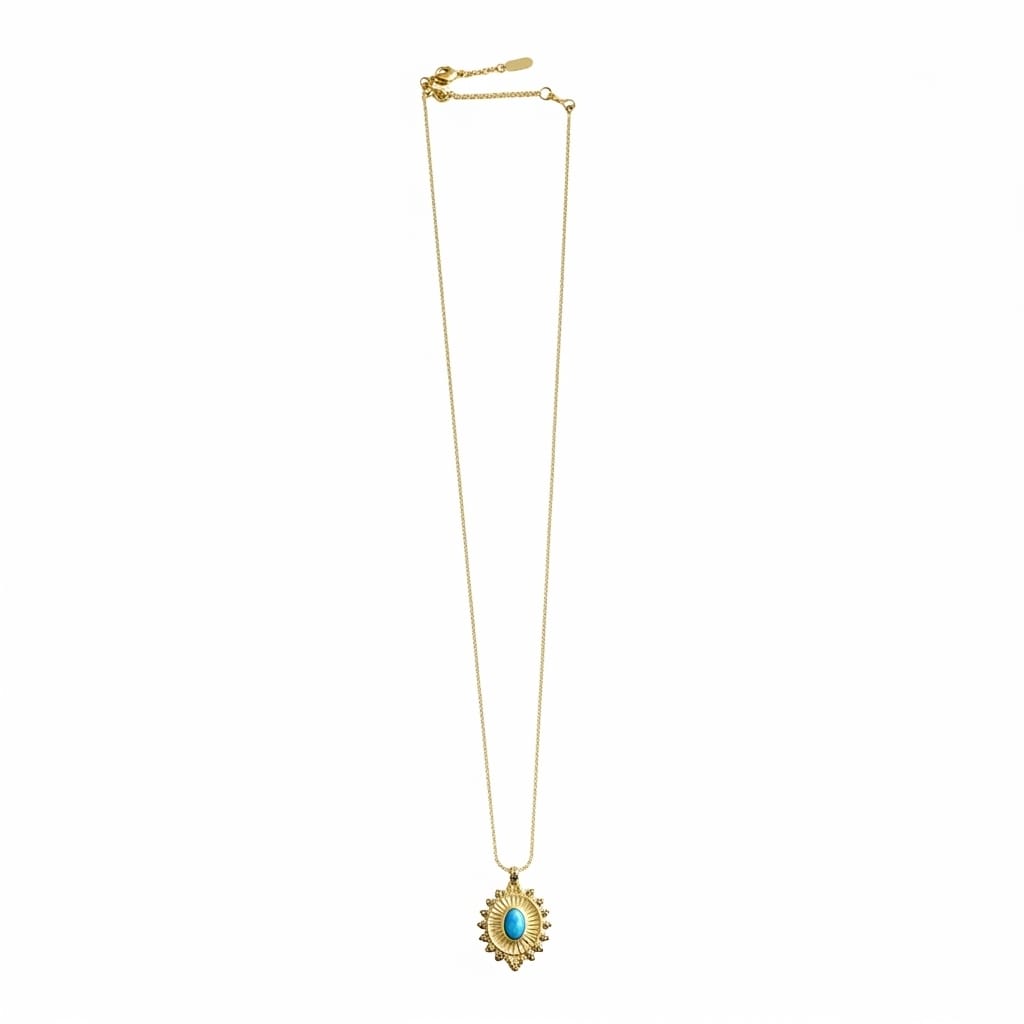 Collana placcata oro 18 carati con ciondolo Turchese intarsiato.