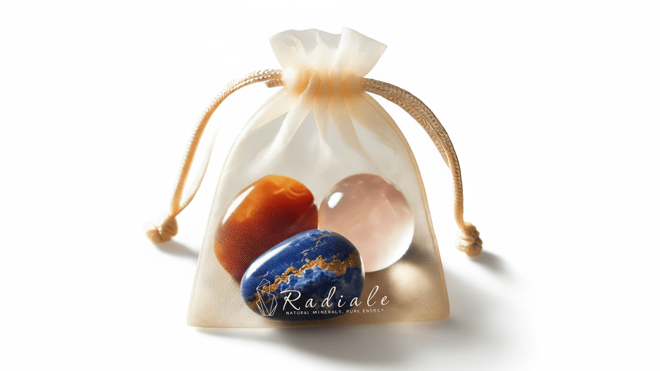 Un kit energizzante con Agata Corniola, Lapislazzuli e Quarzo Ialino. L’Agata Corniola stimola la forza di volontà e la vitalità, mentre il Lapislazzuli favorisce l’intuizione e l’introspezione. Il Quarzo Ialino amplifica le energie e porta chiarezza mentale, completando l’energia di vitalità di queste pietre.