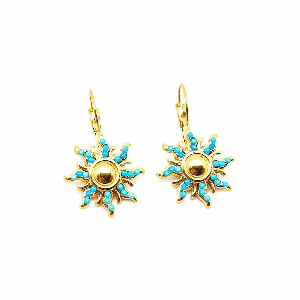 Orecchini a forma di Sole in acciaio inossidabile placcato oro 18 catati con Turchese intarsiato.